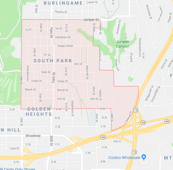 The South Park community is adjacent to both North Park & Golden Hills communities & lies in the south eastern corner of Balboa Park in San Diego City. First developed as a subdivision in 1870 but not fully developed by the Bartlett Real Estate Company until 1905, South Park was positioned as a suburb of Downtown & a "high-class residential district". South Park is considered one of the major historic urban communities in San Diego, hosting an annual "old house fair". The Neighborhood is well known for its "walkability", home to many cafes, restaurants, & shops, as well as hosting a quarterly "walkabout". In addition, South Park has an outstanding reputation for being extremely dog friendly supported by one of the few designated dog parks adjacent to a residential neighborhood.